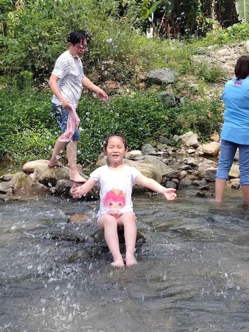小孩們在大人們的帶領下,在潺潺的溪水中歡樂的玩耍,夏季炎熱的天氣,唯有戶外的清涼能夠帶來一絲絲的暢快。